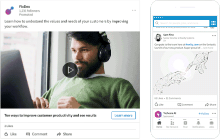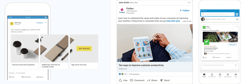 These are static image ads with a single image or multiple images. Single image ads can be used for anything from e-book download ads or schedule demos. The versatile nature allows for quick iteration of creative which can be tested at every stage of the funnel.
