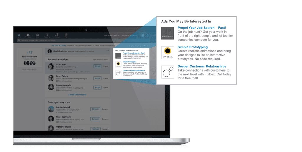 The added benefit of the text ad format is that you can choose to pay-per-click, and since they generally have a lower click-through-rate, you’ll get free impressions to your prospects without paying any money for clicks. This is a great way to provide further ‘air cover’ for your demand generation strategy on LinkedIn while being more cost-effective.