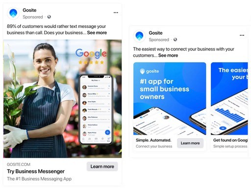Gosite serves a variety of different verticals, home service businesses being the largest. We worked with their design team to develop ad images for each vertical, which resulted in a lower cost per lead and increased engagement on ads.